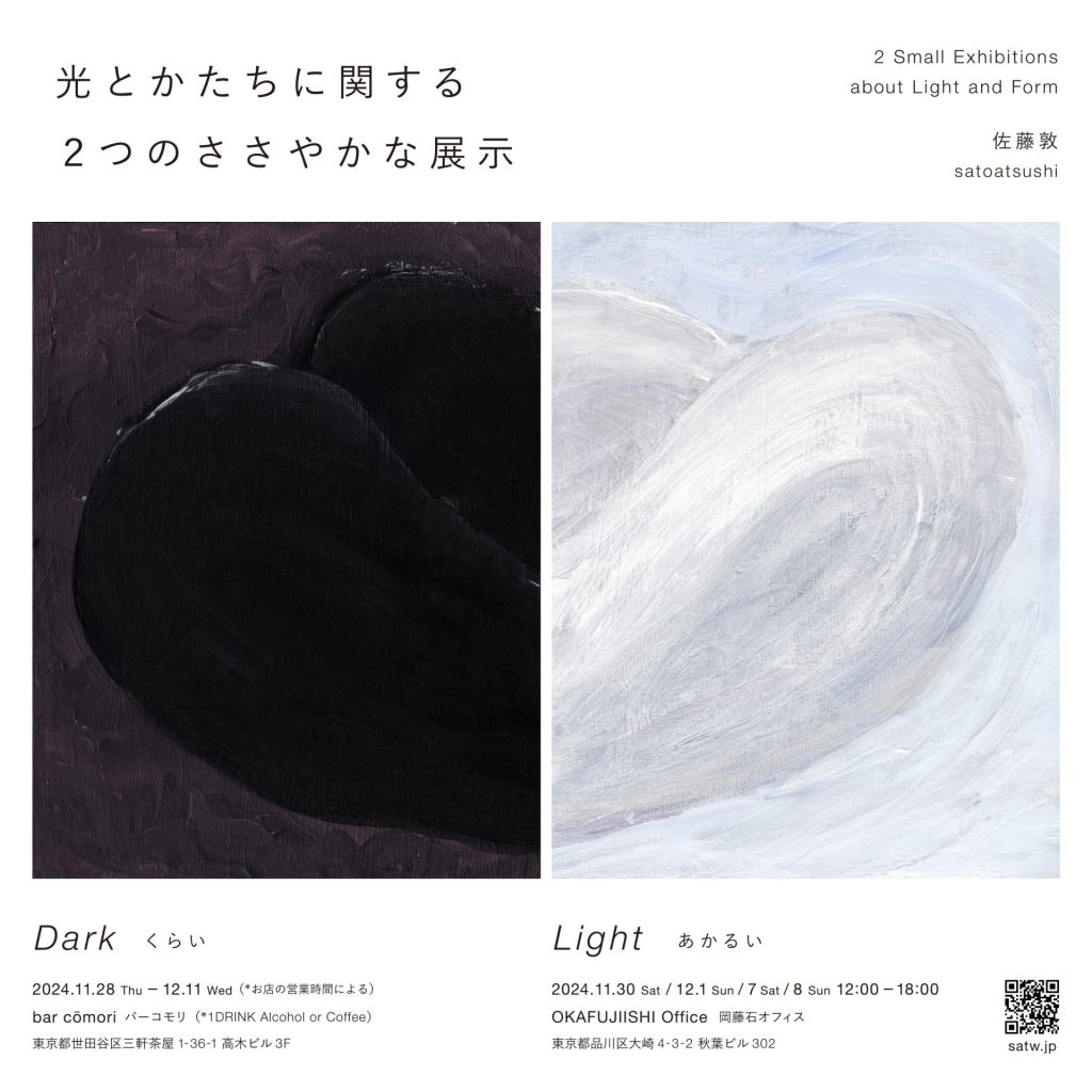 今年は設計事務所岡藤石と彼らのデザインしたバーコモリの多大なるご協力により、オフィスでの間借り展示と本格的なバーの2箇所で展示を行います。昨年までのコンセプトをより突き詰め、光とかたちについて考え制作をおこなった対象的な展示となりますのでどちらともお越しいただけますと幸いです。